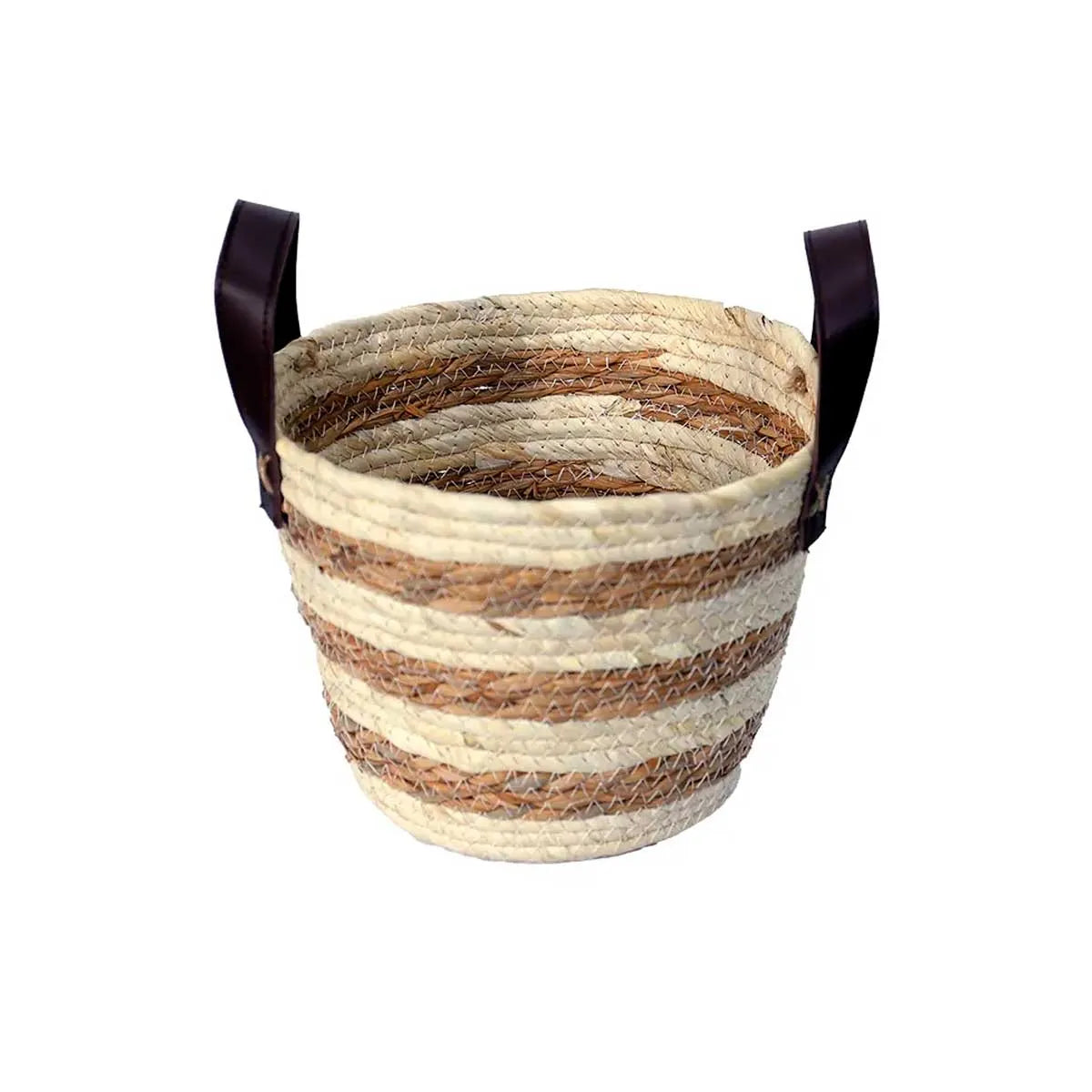 CESTO DE FIBRA NATURAL C/ ALCA 24X18CM MOCCA