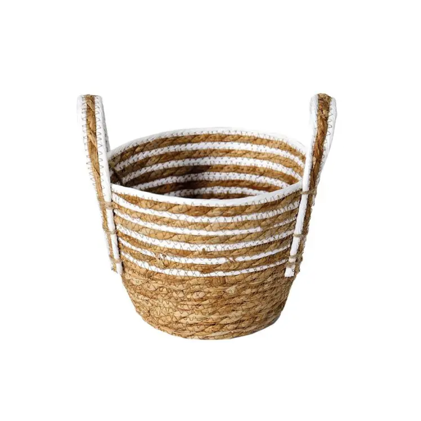 CESTO DE FIBRA NATURAL C/ ALCA 25 X 17 CM BRANCO
