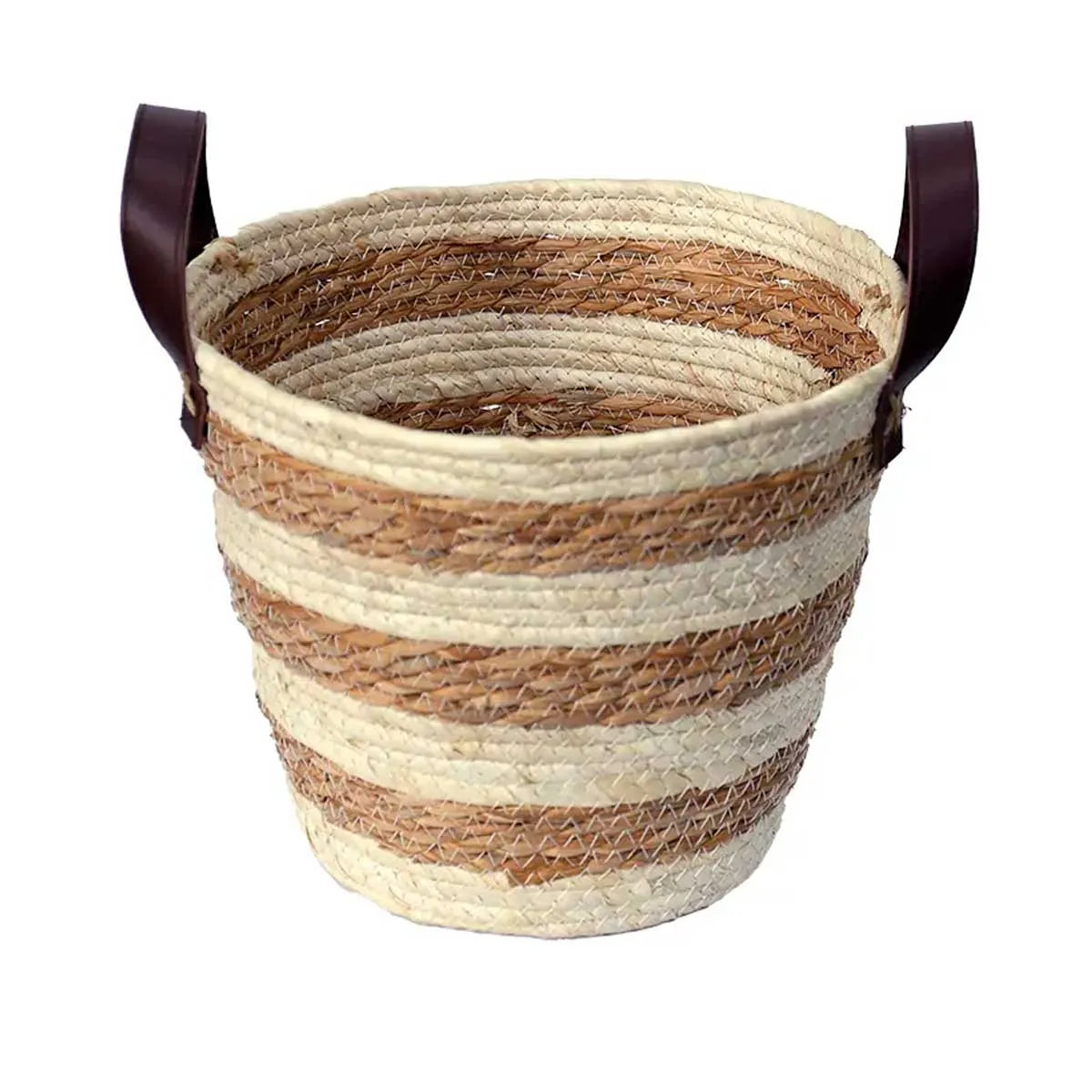 CESTO DE FIBRA NATURAL C/ ALCA 28X22CM MOCCA