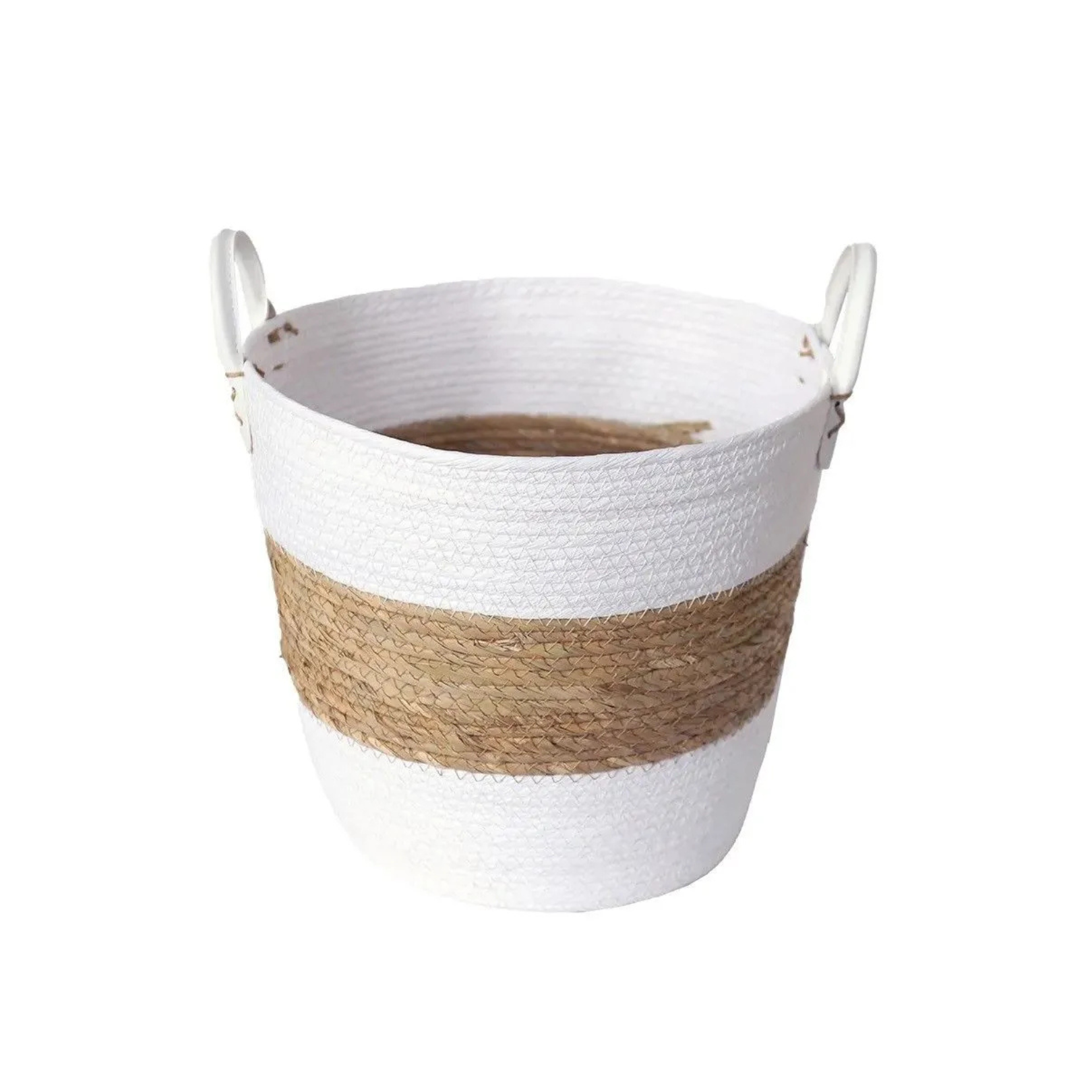 CESTO DE FIBRA NATURAL C/ ALCA 33X28CM BRANCO