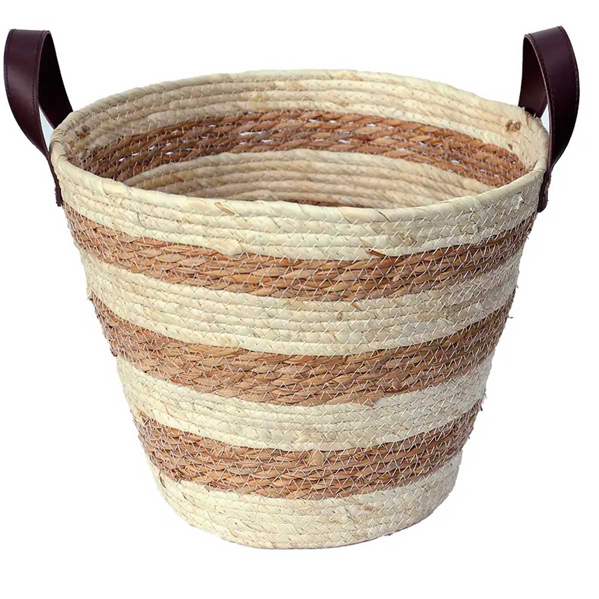 CESTO DE FIBRA NATURAL C/ ALCA 33X28CM MOCCA