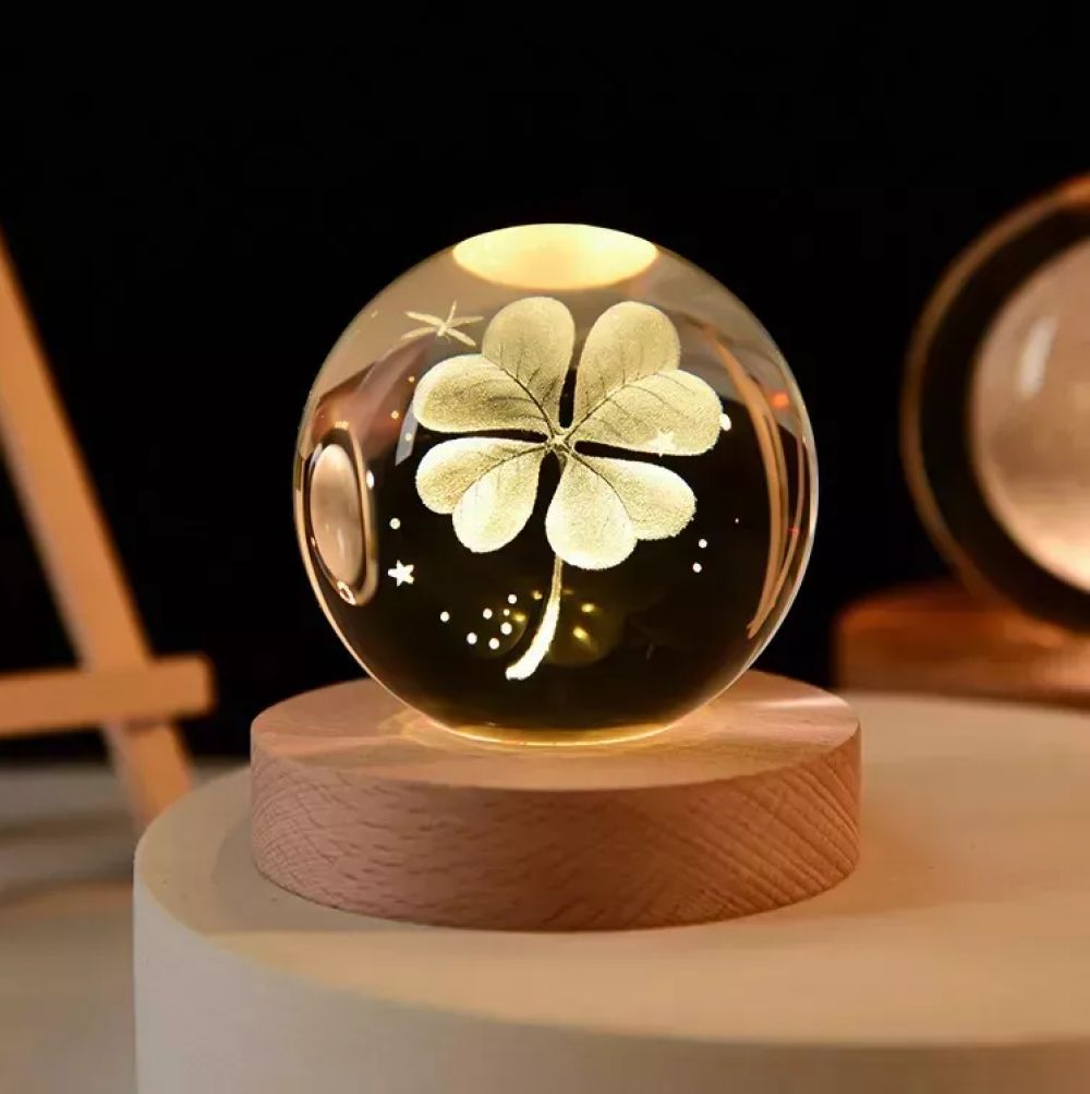 Luminária De Mesa Bola De Cristal Decorativa Base Madeira
