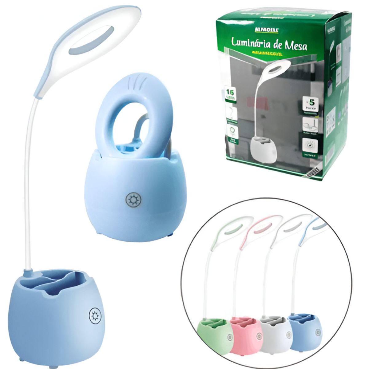 Luminária De Mesa Flexível Recarregável Usb + Porta Treco