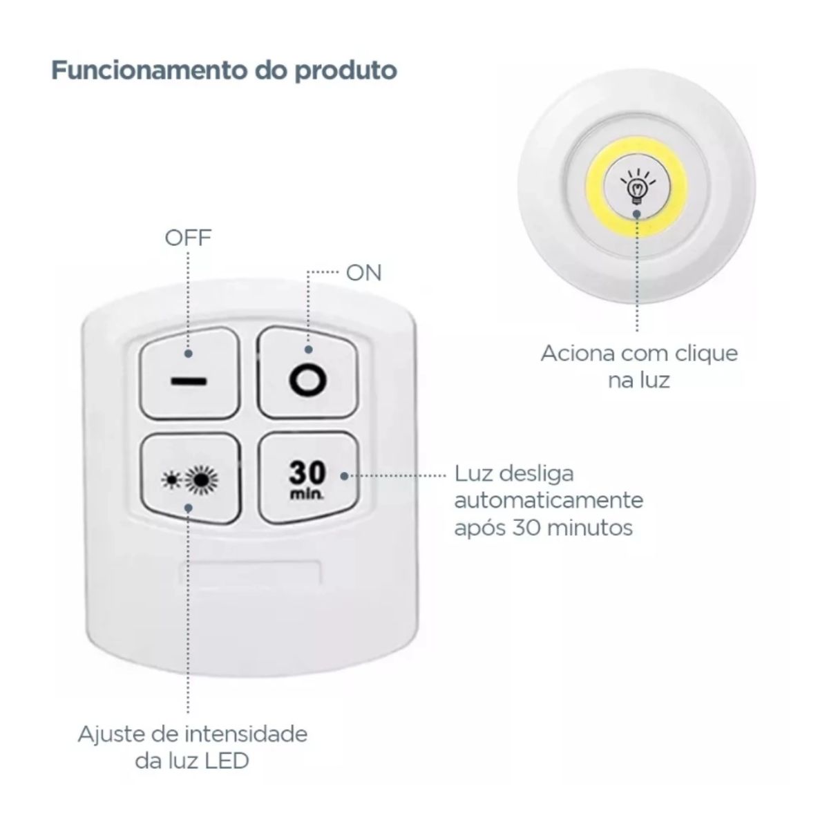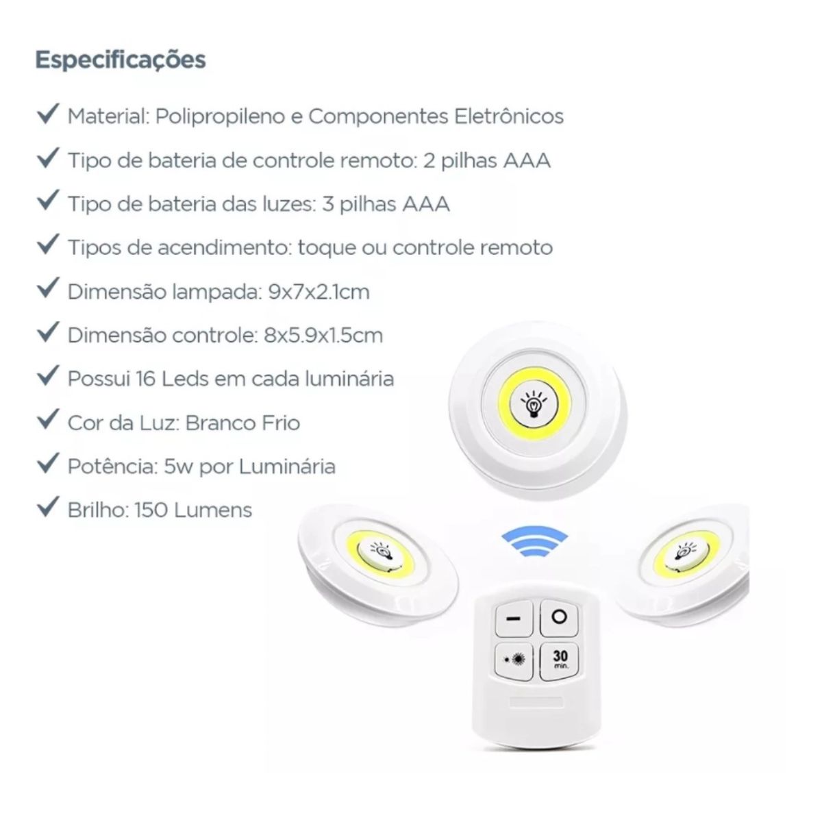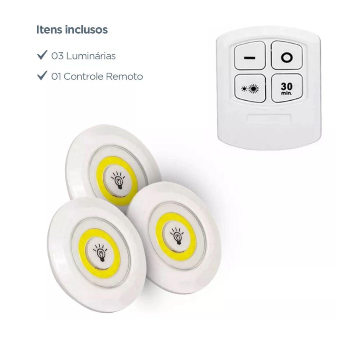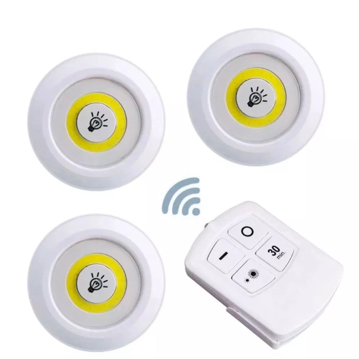 Luminária Kit 3 Lâmpada Led Spot Sem Fio Controle Remoto
